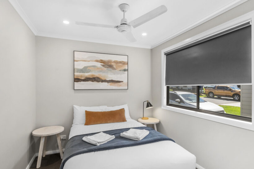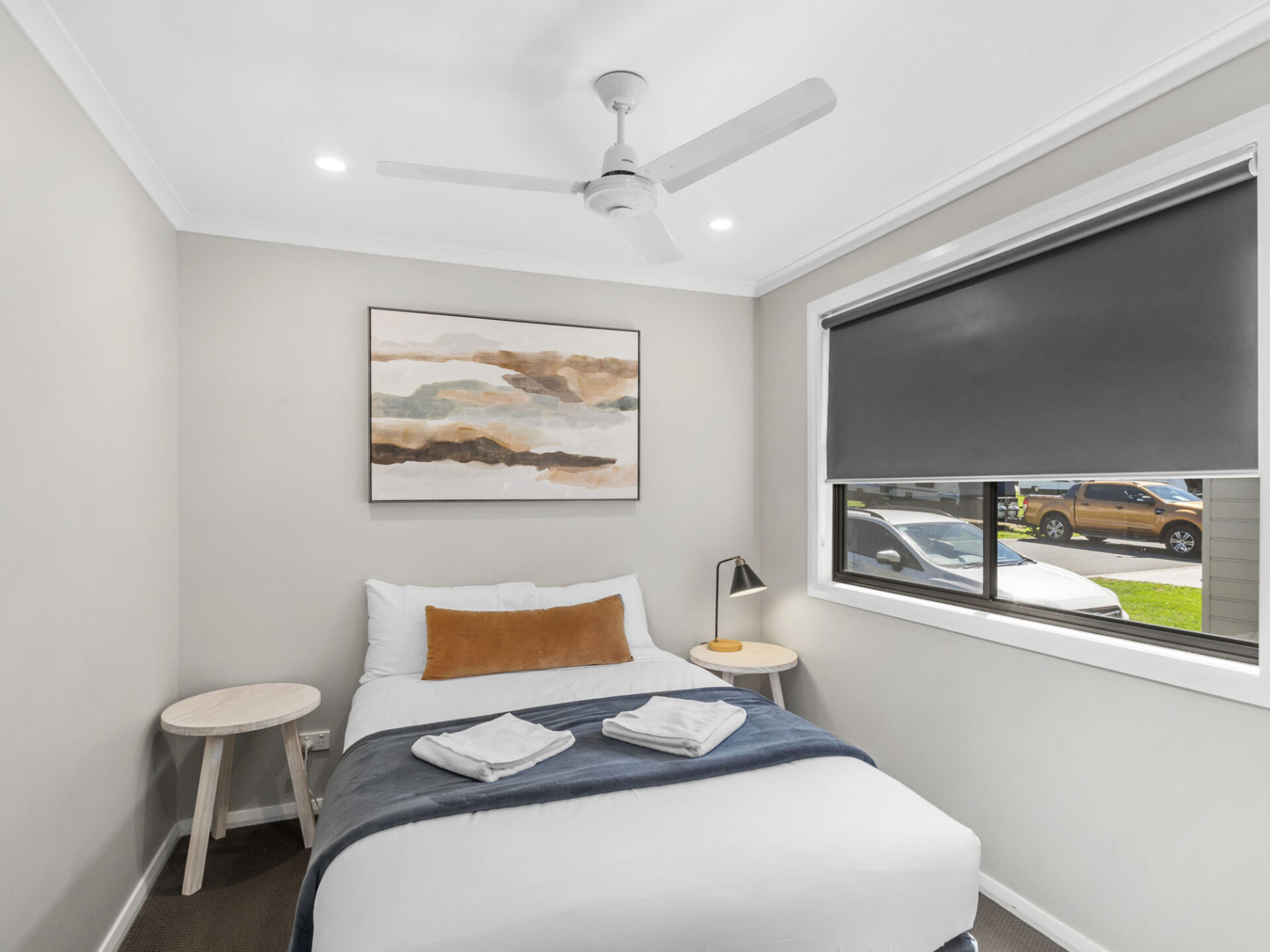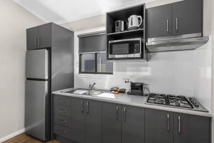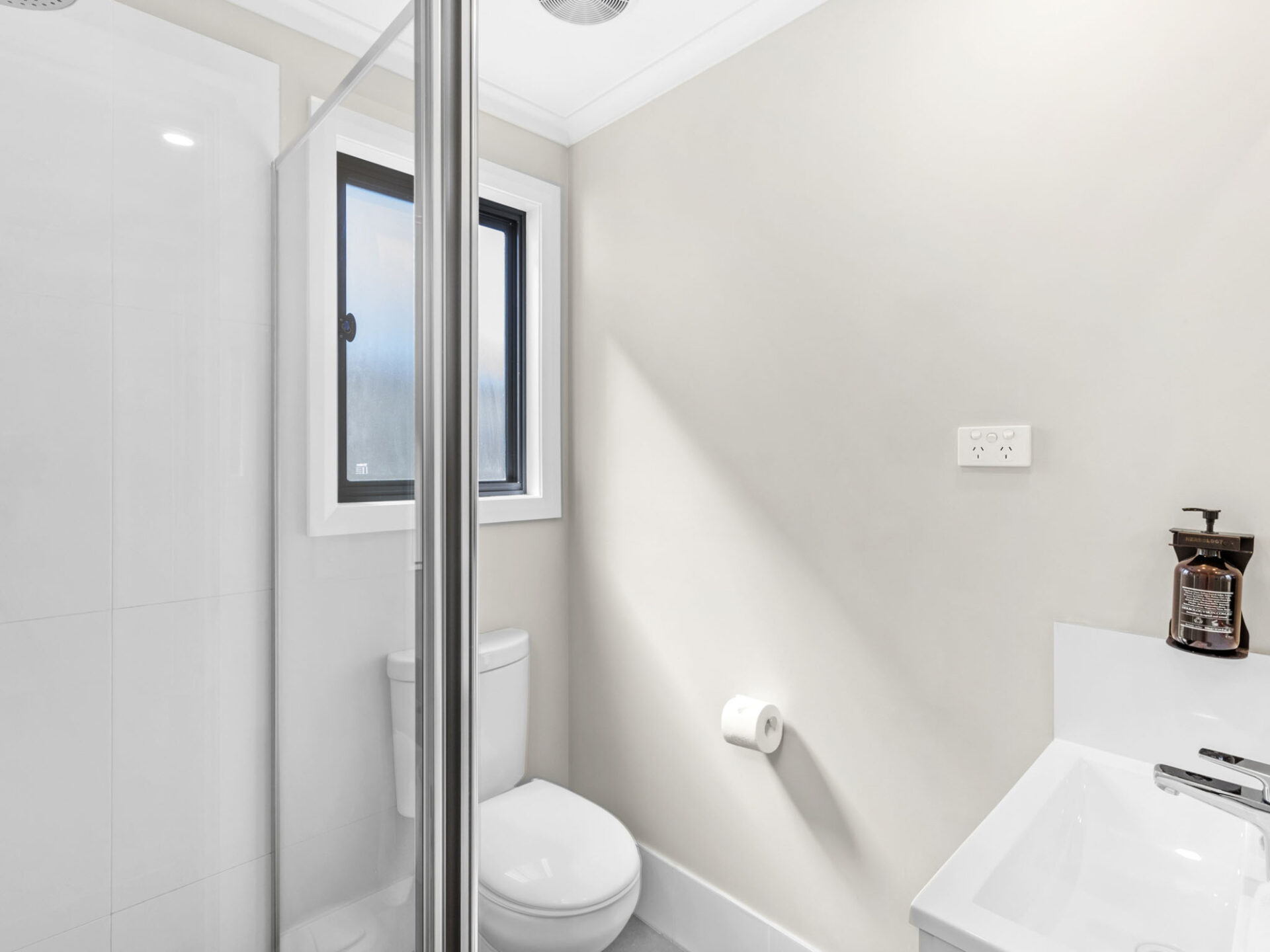 2 double bedrooms sleeping up to 4 guests. Premium soft top double beds, each with electric blankets, extra blankets for warmth and premium pillows are all provided. Both rooms have built in wardrobes. Bedroom 1 has a ceiling fan. Linen and towels are supplied for the number of guests booked in. The living room has a comfortable lounge and ottoman, dining table and chairs for 4, large LCD TV, ceiling fan and climate control air conditioning. There is a fully equipped kitchen including a large fridge/freezer, gas stove top and premium coffee machine. A large outdoor veranda with teak table and bench seats overlook the gardens. Car parking for 1 car, is located next to each villa. There is a ramp to the main entrance, allowing for easy access.