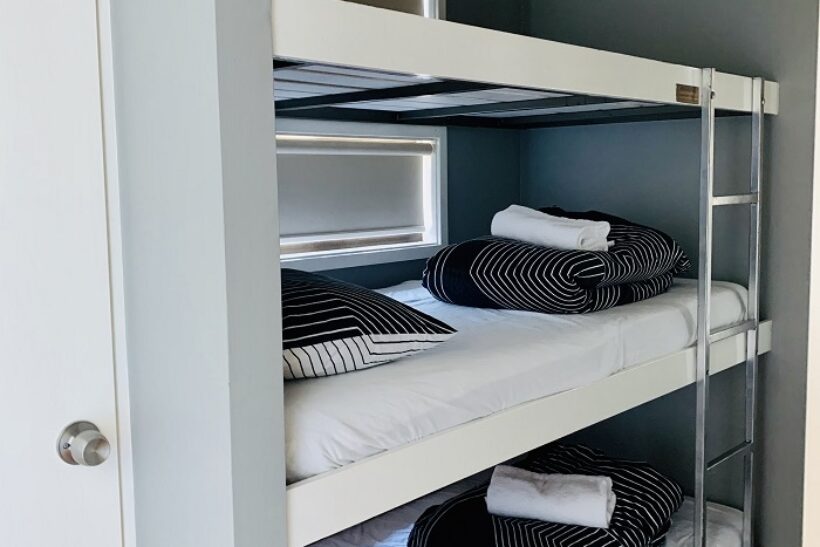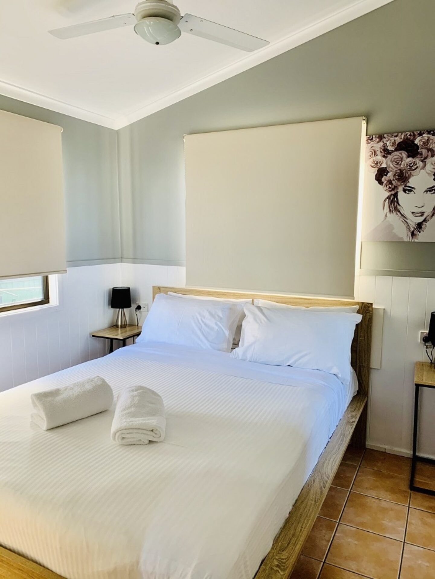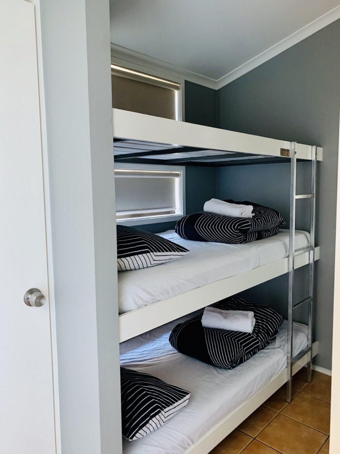 Soak up the sea breeze in this two-bedroom cabin featuring a private balcony. Sleeping up to four with a queen bed and bunk bed, it includes a full kitchen with gas oven, private bathroom, dining area, TV, and reverse-cycle air conditioning. A relaxed and spacious stay near the shoreline.